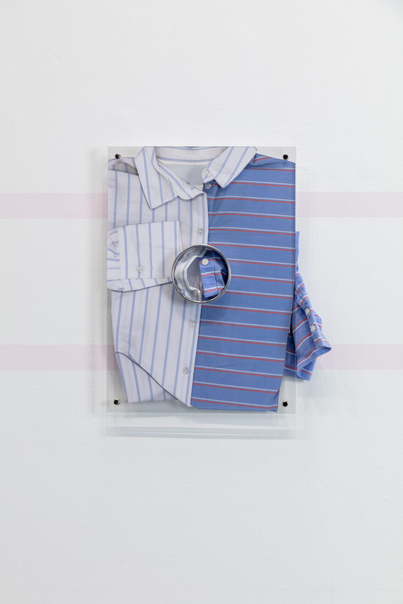 Clear acrylic, stainless steel cookie cutters, bookbinding screws, giclee print on archival paper, shirt